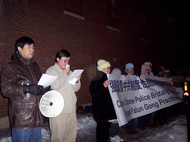 海外法轮功学员谴责中共恶警兽行