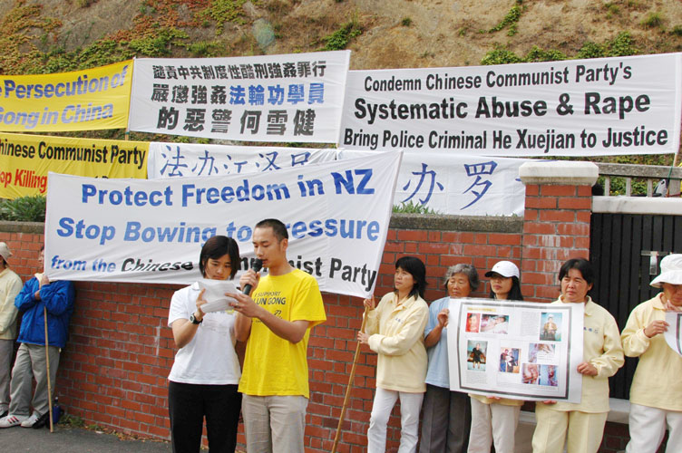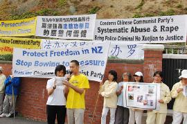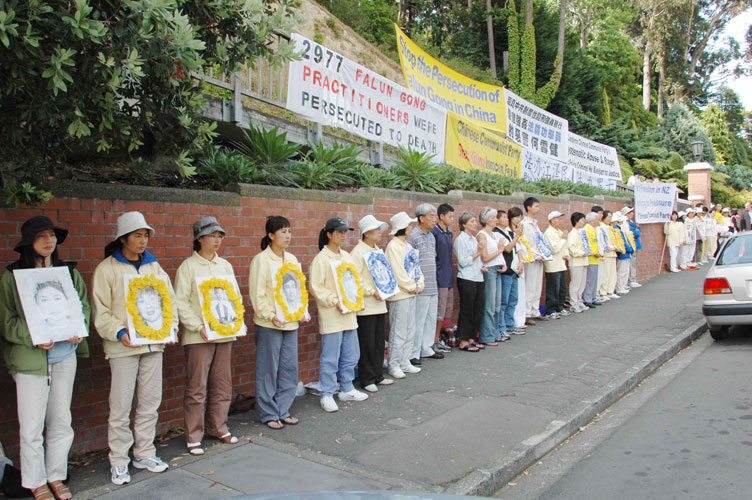 2005年12月17-18日两天,新西兰法轮功学员持续在中使馆前抗议中共对法轮功的迫害。近一段时间,中使馆不断向惠灵顿市政局和警察局施压,企图阻止学员们在中使馆前和平抗议。法轮功学员们一如既往举行和平抗议,向世人讲清发生在中国的迫害的真相。