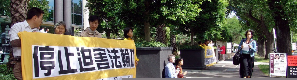 【明慧网2005年12月21日】2005年12月19日,澳洲墨尔本法轮功学员分别在泰国领馆和中领馆前举行和平抗议活动,谴责中共对法轮功的迫害以及泰国政府屈服于中共压力,协助逮捕迫害泰国法轮功学员的罪行,并敦促泰国政府不要放弃自主权而沦为共产暴政的帮凶。