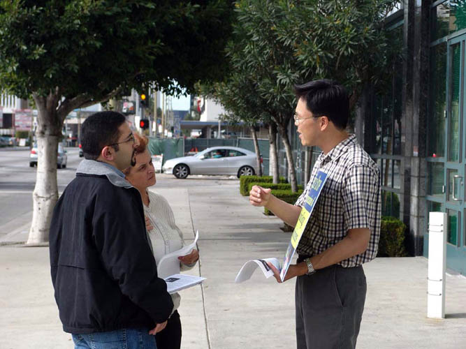 加州大学洛杉矶分校(UCLA)副教授吴英年等法轮功学员代表进入领事馆,把请愿信、《九评共产党》和中共迫害法轮功的真相资料交给副领事Fernando Brun先生,并进行了友好坦率的交谈。Brun先生表示,他已经知道了法轮功学员在阿根廷被殴的事件,并关切的询问被殴学员的伤情。