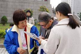 ![]() 中国人拍下梁晓丰呼吁的画面,带回给家乡亲朋好友看 | ![]() 认真听着法轮功学员讲真相的台湾民众 |