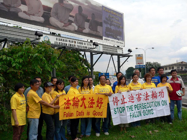2004年1月,衔接马来西亚南北各大州的南北大道旁的巨型洪法广告牌被当局以不合理的方式拆下。一般情况下,广告公司都会在市政局的口头应允后先竖立广告牌,然后再等市政局的批文。法轮功学员的洪法广告牌也在同样的情况下先放上去了,但后来广告公司却被勒令把广告拆下来。