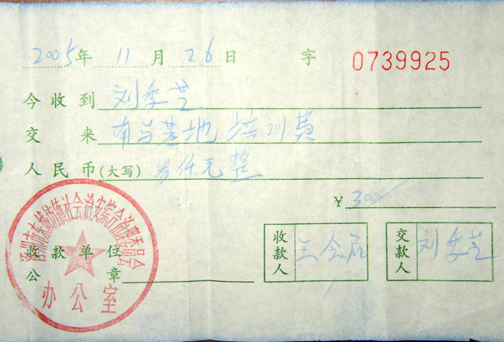 在把屋子翻的乱七八糟后,他们抄走了一个手抄日记本(那是我抄的我师父的《洪吟》诗)、一个真象小册子,两盘录音带,一个我孩子学英语用的双卡录音机,一个旧录音机,一个单放机。然后不分青红皂白,他们把我强行扭带上了门口停的松花江小车里拉到了村大队。