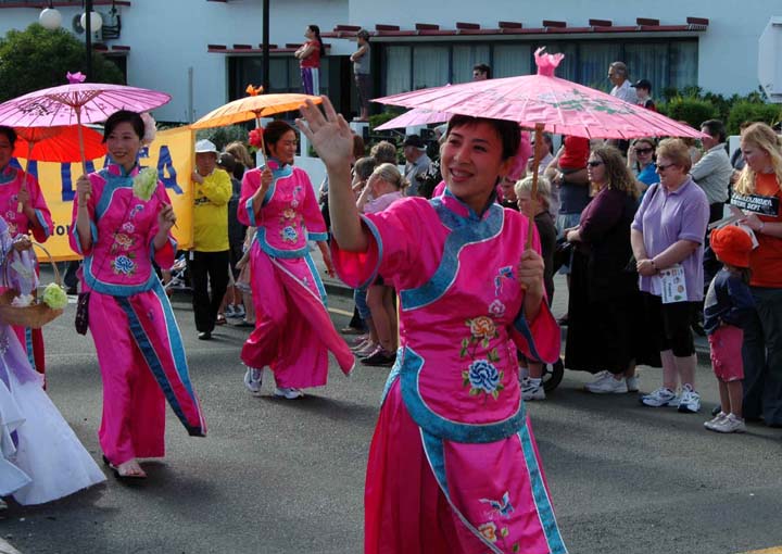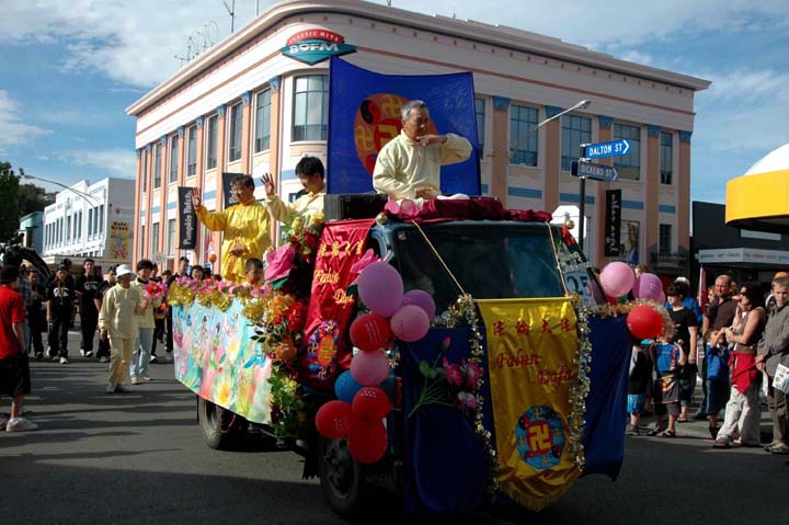法轮大法展现在新西兰内皮尔市的圣诞节游行(图)
