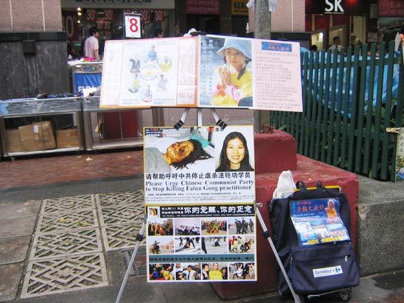![]() 法轮功学员向路人讲述真象 | ![]() 介绍法轮功及其在中国受迫害的展板 |