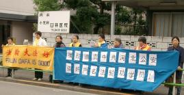 惊闻中国河北两名女法轮功学员遭受酷刑后又遭中共恶警强奸的消息,日本法轮功学员于2005年12月6日到中使馆前,强烈谴责中共流氓行径,法轮功学员在使馆前宣读抗议文,呼吁国际社会关注及帮助制止仍在中国发生的对法轮功学员的残酷迫害,严惩强奸犯何雪健及相关人员,把迫害主犯江泽民、罗干、刘京、周永康等绳之以法。
