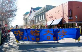 2005年12月3日,美国加州的海滨城市圣塔克鲁斯举办了一年一度的欢庆节日游行,今年游行的主办单位特别邀请了法轮功学员参加。