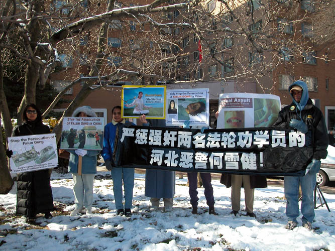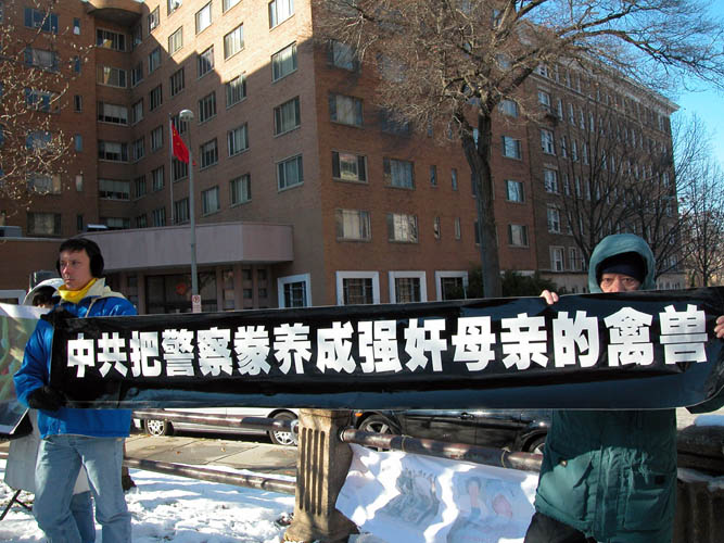 在中使馆前坚持抗议长达六年的法轮功学员代表陶妈妈,悲愤的说:“站在这里,我不知道我该说什么。愤怒和悲痛都不足以表达我的心情。光天化日之下,在我的祖国,竟发生了这样的事情。恶警强奸了相当于他母亲年龄的法轮功学员!法轮功学员修炼真、善、忍,那是为真理的坚持,不是逆来顺受!我们可以忍,但天都不能忍,神都不能忍!恶警一定要被绳之以法!我们一天也不要等了,这样的事情决不能再发生!”