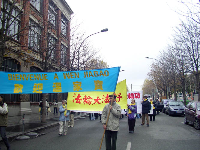 温家宝访法 欧洲学员游行吁停止迫害(图)
