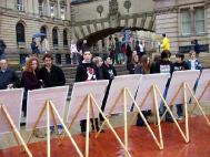 2005年2月5日,英国伯明翰市中心的臣博林广场成为过往行人的焦点,不久前大法弟子还应邀参加了这里的艺术节,今天又在这里向世人演示中共江××集团5年来对法轮功修炼者惨绝人寰的酷刑迫害。