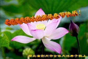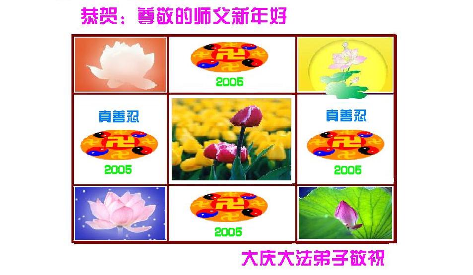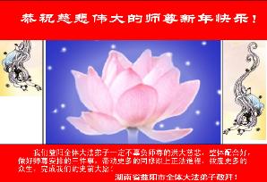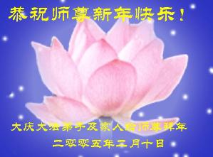 我仅代表重庆大法弟子及家人祝慈悲伟大的师父新年快乐!