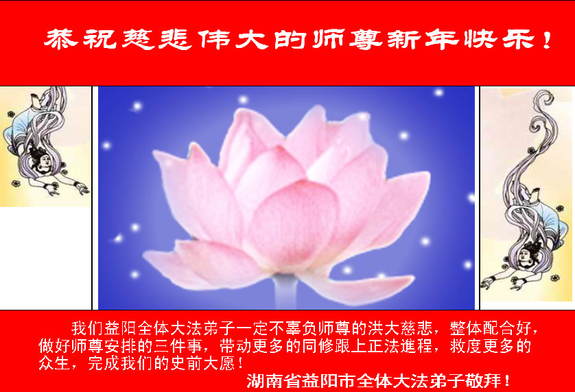 同时也祝世界各地大法弟子新春快乐!让我们牢记师尊教导的三件事:学好法、发好正念、讲清真象,相互配合好形成一个整体,把救度世人的事做好!