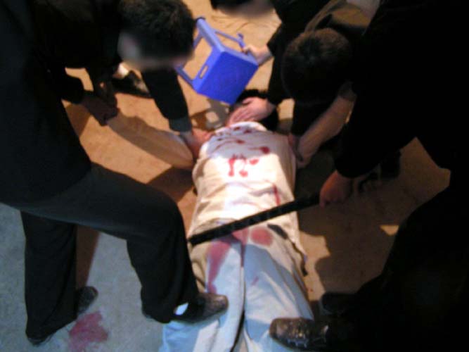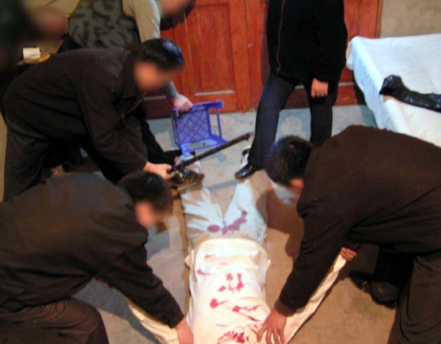 以下照片为根据当事人描述,由法轮功学员重组的当时
