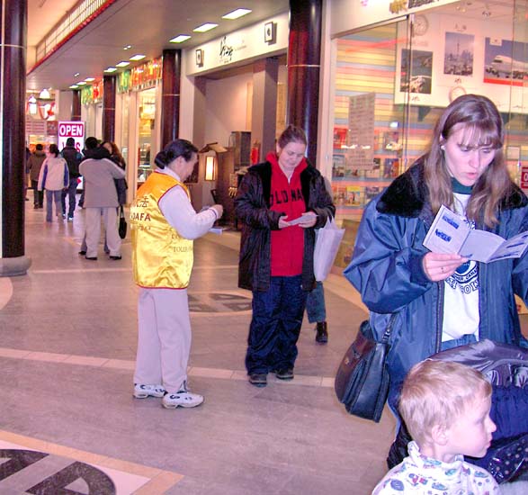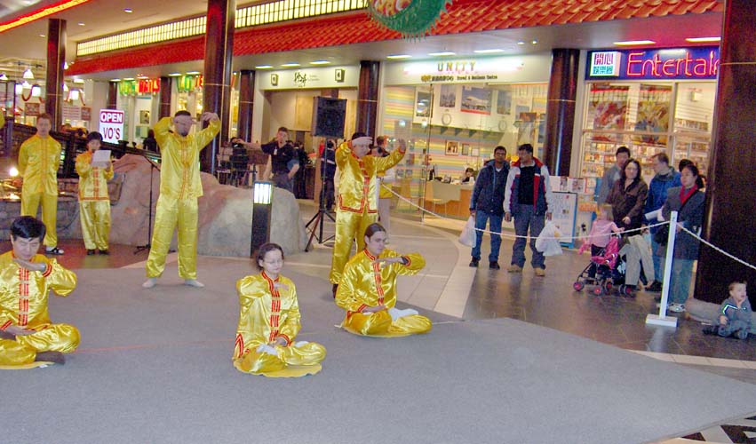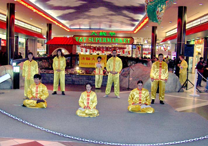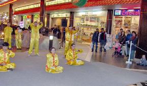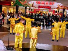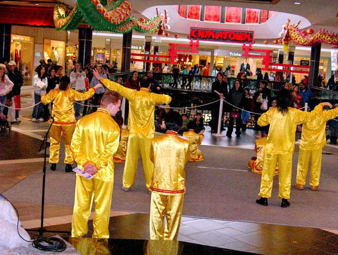 【明慧网2005年2月14日】2005年2月5日,农历新年即将到来之际,加拿大埃德蒙顿市(Edmonton)的西贸购物中心(West Edmonton Mall)(西贸商场是世界上最大的室内商场之一)在中心内的唐人街举办了华人新年庆祝活动,当地法轮功学员参加了庆祝活动,并演示了五套功法。