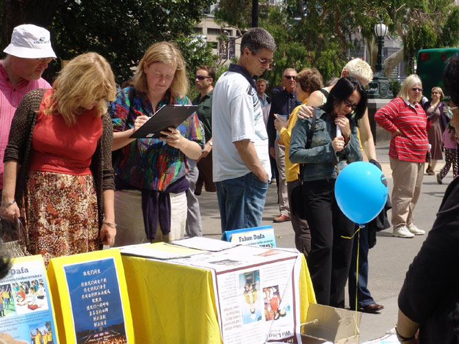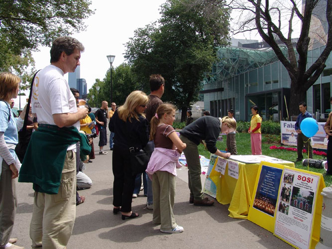 很多人看了揭露迫害的真象图片后非常气愤,都说他们完全相信中国发生的这一切,中共这样一个人权恶劣的政府根本没有资格主办2008年奥运会。一个小伙子在看完真象后说:“共产党怎么可以这样对待生命,真是太邪恶了!”了解了真象的人们纷纷在征签本上签名,呼吁早日结束这场惨无人道的迫害。