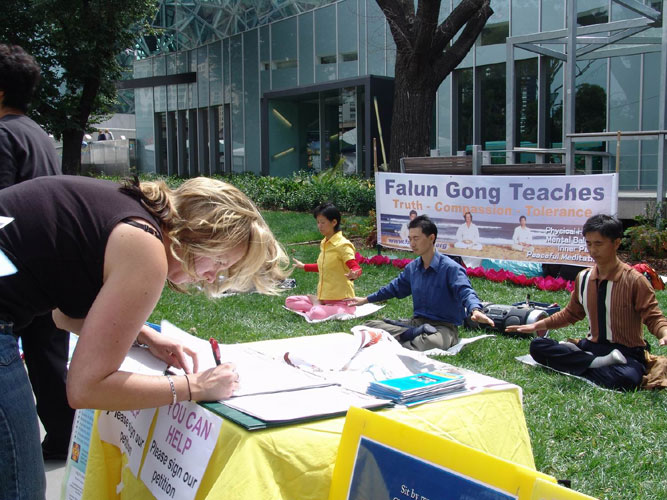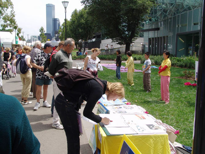 【明慧网2005年2月23日】2005年2月18日至20日,澳大利亚墨尔本法轮功学员应邀参加了为期三天的“健康环保节”。健康环保节由墨尔本“持续生存基金会”主办,主题是“为了人类能持续生存”,旨在让更多的人一起来关注、保护和改善我们的生存环境,包括我们人体自身的内在环境。自基金会成立以来,已举办了四次这样得节日,今年是规模最大的一次。