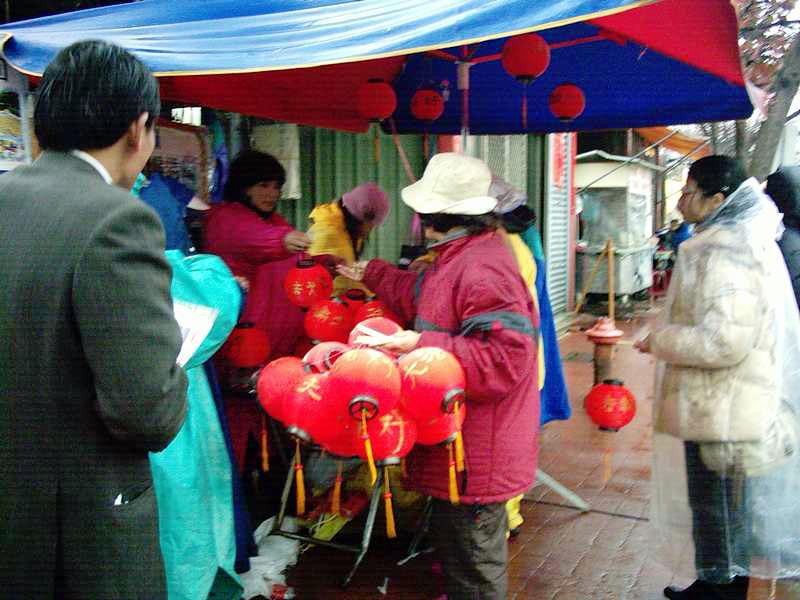 【明慧网2005年2月25日】五花八门的各式灯笼中,有一种特别的灯笼,吸引了很多民众主动来索取,并且还帮亲朋好友多要了几个,那就是写着“法轮大法好”的灯笼。而上面有着“世界需要真善忍”的气球及莲花书签吊饰,也同样受到广大民众的欢迎。这是在台湾台中县丰原市元宵灯会中奇特的景象。