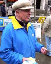 2005年1月29日,法轮功学员们在伦敦圣马丁教堂附近举行了一场介绍法轮功与揭露发生在中国的迫害的活动。