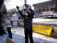 过去法轮功学员们都是在市中心集会,近半年来大家分别在居民集中的社区集会讲真象,以便让更多的世人了解法轮功和发生在中国的迫害。