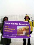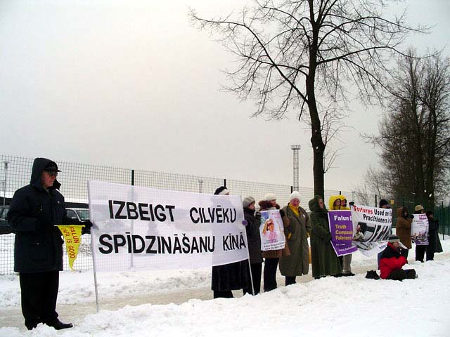 【明慧网2005年2月6日】拉脱维亚大法弟子于2005年2月4日下午在中使馆前举行了集会,呼吁立即停止在中国正在发生的对大法弟子惨无人道的