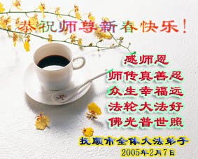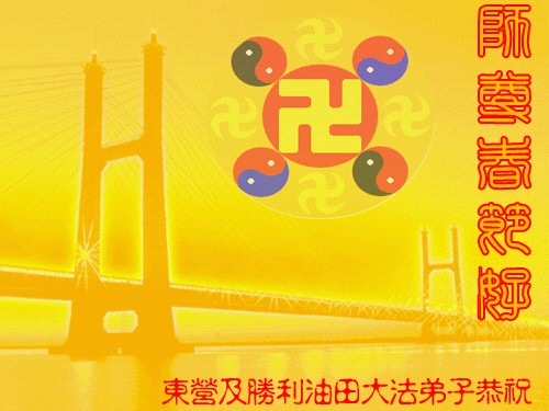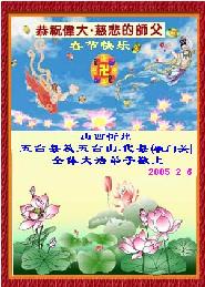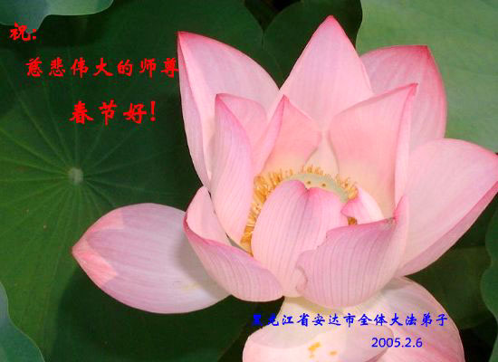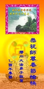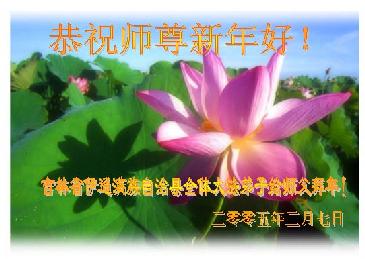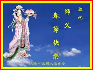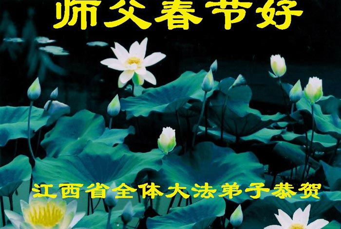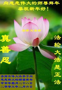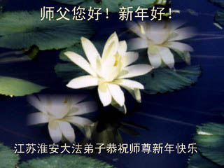 值此新春佳节,谨代表江苏淮安大法弟子和被非法关押在狱中的大法弟子向伟大的师父拜年!我们一定听师父的话,抓紧时间做好三件事,不辜负师父的慈悲苦度!