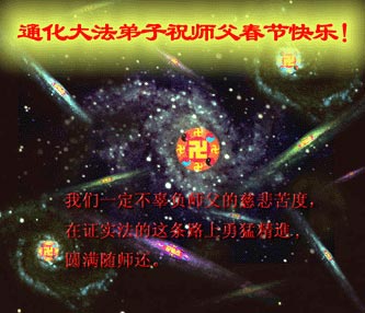 我们一定按照师父的要求、按照正法弟子的标准全身心的做好三件事、实践我们史前的神圣誓约、履行我们正法时期的救度责任。我们一定充分利用一切有利条件、与国内大法弟子充分配合、共同协调,抓紧时间、理智的、智慧的、全面的救度那些仍然被邪灵毒害的中国国内迷中众生。我们一定按照正法时期大法弟子的最高要求,在正法实践中整体升华、整体提高,锤炼成为真正合格的宇宙中第一称号的生命--大法徒,兑现我们法粒子永恒维护宇宙大穹的神圣职责。师父,请您放心,我们一定会做到。再一次恭祝师父新春快乐!