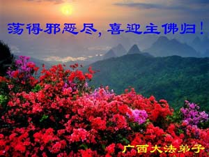 在邪恶即将全灭,光明即将到来的宇宙伟大而特殊的历史时期,我们作为正法时期大法弟子,绝不懈怠,加大力度挽救众生,兑现我们史前的洪大誓愿,师尊为我们承受的太多太多,把我们造就成朵朵金莲,我们要担起正法时期的重任,满载众生随师还!
