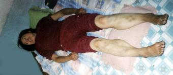 此时家人看到陈秀芹身体已瘦得皮包骨,人已脱相,生活不能自理,身体被打伤部位呈大片的紫黑色。至今她的腿还疼痛、麻木,胳膊还不能向后背,提重物。