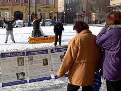 2005年1月25日,捷克和斯洛伐克的法轮功学员在济诺摩市举办图片展,让人们了解中共江氏集团对法轮功修炼者的酷刑迫害。