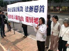 在中国新年前两天的星期一中午,大约50名香港法轮功学员到中联办请愿,要求中国政府马上制止对法轮功的迫害,释放所有被关押的学员,以及发还香港学员遭没收的回乡证。