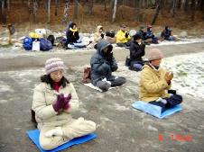 2005年2月6日,中国农历新年前夕,瑞典斯德哥尔摩法轮功学员来到中使馆前進行和平请愿,呼吁立即停止在中国对法轮功的残酷迫害。