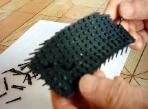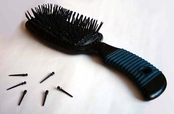 “插皮子”:张士教养院与沈阳海威饰品有限公司常年合作,生产发梳,大量出口日本、美国、欧洲等十几个国家。海威公司负责提供原料和组装,张士教养院负责生产梳子头和包装盒(即“插皮子”和“糊盒”)。发梳的头部皮子是橡胶做的,每名学员每天必须完成往皮子上插梳钉(“插皮子”)400-600张,任务急时还要多干,梳钉为硬塑、质地坚硬,长时间插皮子手特别痛,甚至被磨起泡。