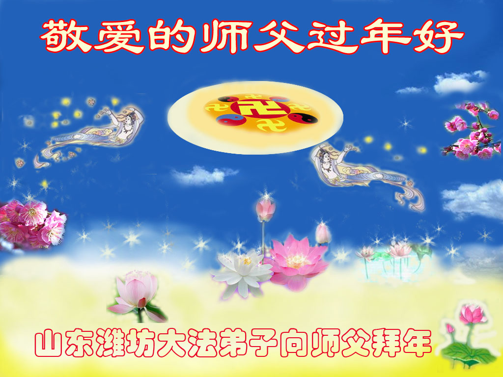 • 山东潍坊大法弟子向敬爱的师父拜年