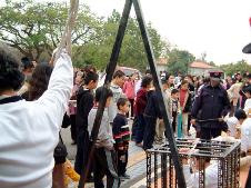 二二八和平纪念日的前夕,台湾的法轮功学员于2005年2月27日上午十时至下午六时,在南投县中兴新村的儿童公园举办反酷刑展活动,南投县议员林永鸿、简沛霖、南投市长李朝卿莅临致词,同声谴责中共泯灭人性迫害法轮功,稍后草屯镇长也来到现场声援,呼吁民众发出正义的声音制止迫害。