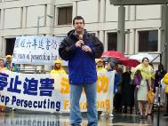旧金山市议员克里斯-戴利也出席了集会。在谈到2月中旬中共黑手干扰法轮功参加新年游行时,戴利在集会上说,“大家可能听说了上周在旧金山举行的新年游行,一开始我听说法轮功的游行申请被拒绝了,我马上跟我的法轮功朋友说,我参加这个游行,如果你们不能参加游行,你们可以跟我一起参加游行。”
