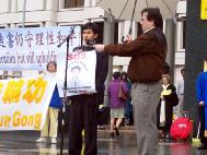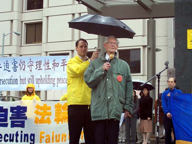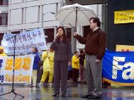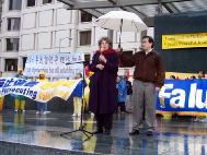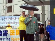 英国前资深外交官瑟罗勋爵也前来支持,他在集会上说,我们应该让更多的人了解到发生在中国的迫害,因为揭露邪恶是结束5年半的迫害最有力量的武器。在过去的50年中,中共犯下了许多罪行。现今,许多法轮功学员被折磨致死,甚至是孩子他们也不放过。而这些迫害却被中共用谎言宣传企图掩盖,不光欺骗中国的人民,还通过其驻海外的使领馆欺骗海外的华人。他说,“不允许再这样继续下去了。自由世界的媒体有责任让中国人民了解真象。我们呼吁所有的媒体为法轮功学员说话。”