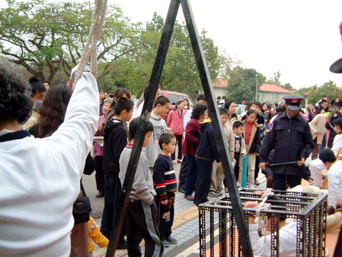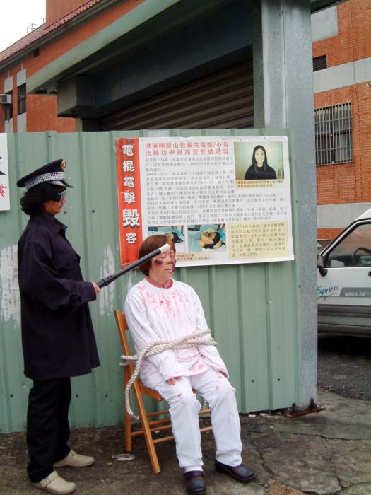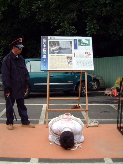 担任酷刑演示的廖女士表示:自己是大法修炼的受益者,应该站出来说一句公道话,虽然演示酷刑很痛苦,但和大陆的同修比起来根本不算什么,只希望更多的人看了之后能够明白,不要再受中共江氏集团谎言的欺骗。另一位随车演示酷刑的尤小姐说:“出来演示酷刑是要证实迫害的残酷,希望唤醒世人的善念,让中国的法轮功学员早日恢复自由的修炼环境。”