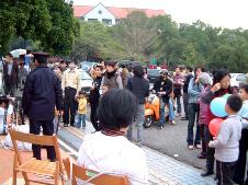 南投连日阴雨的天气,直到27日上午九点多仍未放晴,神奇的是,在法轮功学员组成的腰鼓队开始表演后,绵绵细雨竟然停了,天空慢慢变亮、阳光乍现,一扫连日阴霾而显得相当暖和,儿童公园出现难得的人潮。
