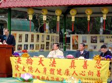 法轮功学员中兴大学教务长刘正义在致词中表示:法轮功是一个让修炼人迅速达到身体健康、净化心灵、道德提升的好功法,可是在中国大陆却受到共产党和江泽民集团荒唐的镇压,成立610办公室,使用一百多种惨绝人寰的酷刑,对法轮功学员进行灭绝式的迫害,是天理不容的。举办这个活动的目地是要让南投的乡亲了解法轮功是非常美好的,同时看清中共严重迫害人权的残暴本质。