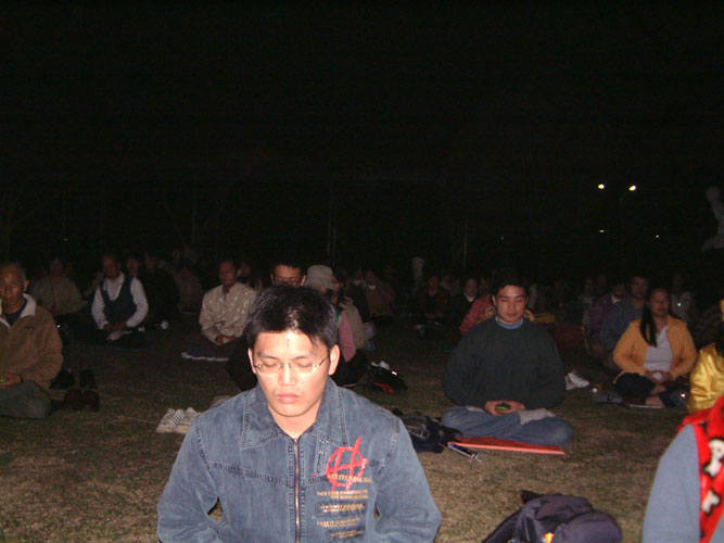 下午六点多,参与活动的法轮功学员齐聚公园一角,追思在中国被迫害致死的1400多名法轮功修炼者,在庄严的气氛与祥和的音乐声中结束了一天的活动。