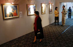 【明慧网2005年3月1日】(明慧记者周容台北报导)2005年2月25日元宵节过后,在台北最繁华的东区,一场别开生面、撼动人心的艺术飨宴隆重登场。气派的建筑,精心设计的橱窗,搭配一幅幅精彩的画作吸引着路人的目光。经过两天的预展,这个预定展至3月8日。有别于一般画展的特殊美展,已引起民众广泛的注意。