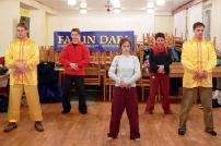 王大爷高兴的说,我没有花一分钱就使我的五官又端正了,法轮大法真是太神奇了。他的女儿们都诚心的喊“法轮大法好”。