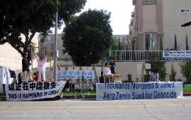 洛杉矶法轮功学员中领馆前举办反酷刑展(图)