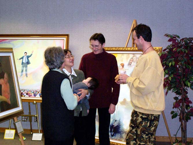 画展期间有很多感人的事情发生。许多人停在作品前仔细观看,并阅读每幅画的介绍;有的人以前听说过法轮功,但并不真正了解,看了画展后知道了什么是法轮功及迫害的真象;还有的和不同的学员交谈,希望能了解得更多并给予帮助;有的第一天看完,第二天带着亲戚朋友又来看;一位老太太给她的朋友当起了解说员;还有的一再对学员表示感谢,希望以后有类似的活动告诉他,他一定会来;有一位当天晚上给学员打电话想学功,并想加入讲真象、让人们了解正在中国发生的迫害。