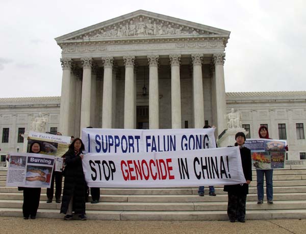 【明慧网2005年3月12日】2005年3月11日中午,部分华盛顿DC法轮功学员来到美国最高法院前,向人们揭露江氏集团在中国用