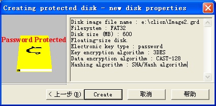 创建新虚拟磁盘文件。在主窗口中按“Create...”按钮开始“Creating protected disk”向导: