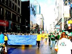 ![]() 法轮功学员参加圣派翠克节游行 | ![]() 法轮功学员的腰鼓阵 |