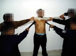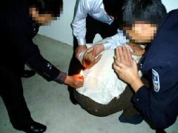 恶警指使犯人扒下大法弟子的裤子,用手狠捏睾丸,有的学员睾丸被捏化,象液体状。此酷刑使人钻心透顶的剧痛,从头顶心到胸部直至小腹都剧痛无比,极其残忍。