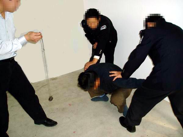 四、五个犯人把学员按趴在地上,胸腹着地,把两臂反剪在背后,两个犯人拽着胳膊,两个犯人拽着腿,用力向外侧拧脚踝,拽住胳膊的犯人用力从背后成反关节推压,把两臂从背后推压至90~180度角,有时甚至把学员两臂从背后成180度角来回划动,反复推压,这时手从臀部划过背后,再划过头顶,最后将学员的手从背后成180度角按在地上,肩部是反关节,学员的肌肉和韧带被撕裂了,剧痛无比,疼得死去活来,有时昏死过去,由于学员头部和脖子承受巨大压力,被紧紧压在地上,几乎不能呼吸(断气了),脸与地面来回摩擦,疼痛难忍,此酷刑的痛苦和残忍程度是难以想象的,很多法轮功学员都受到此酷刑的折磨。(受此酷刑的学员有孙开清、云福起、黄铁诚、孙同庆、杨雪秋、闫继国等,以上仅为部分学员,很多受此酷刑的学员姓名不详。)(如图1)