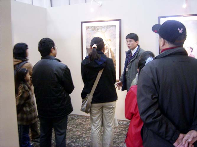一位来看过两次画的先生说,你们的画展太好了,能延长到三月底我的朋友回国就来得及来看了。还有三位太太看到美展海报就一路从松山车站找到画展地点,她们说,还好你们的画展还没结束,否则就白跑一趟了。另一位远自基隆来的老公公也说,他接到画展宣传单一看日期好像快结束了,就赶过来碰碰运气,没想到还可以看到画展。
